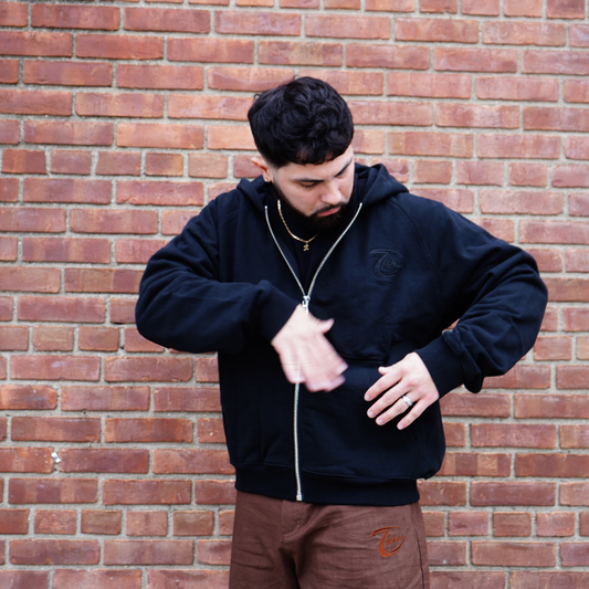 HEAVY ZIP UP HOODIE - BLACK